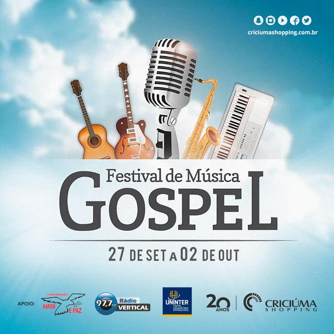 A CENJ estará participando do Festival de Música Gospel no dia 27/09 no Criciúma Shopping, com o CORAL CENJ e o MINISTÉRIO DE LOUVOR CENJ.